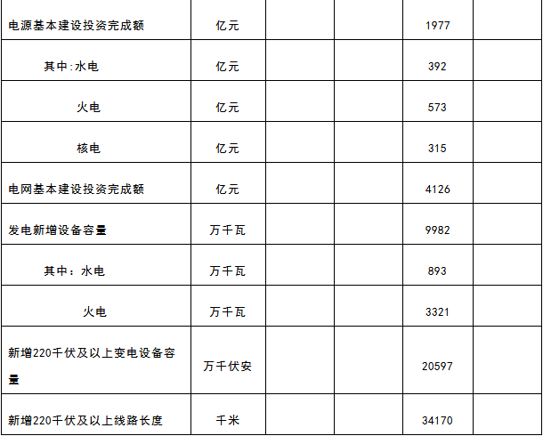 國(guó)家能源局公示:全國(guó)1-10月份電力工業(yè)數(shù)據(jù)表
