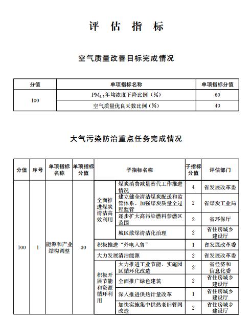 第三條評估指標包括空氣質(zhì)量改善目標完成情況、大氣污染防治重點任務(wù)完成情況。