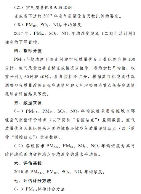 第二條本辦法適用于對我省各設(shè)區(qū)市人民政府(以下簡稱“各市政府”)大氣污染防治目標任務(wù)完成情況的評估。