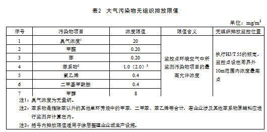 (2)自本標(biāo)準(zhǔn)實(shí)施之日起,紡織染整企業(yè)大氣污染物無組織排放監(jiān)控點(diǎn)濃度限值應(yīng)符合表2規(guī)定。