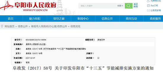 安徽阜陽發(fā)布:“十三五”節(jié)能減排實施方案