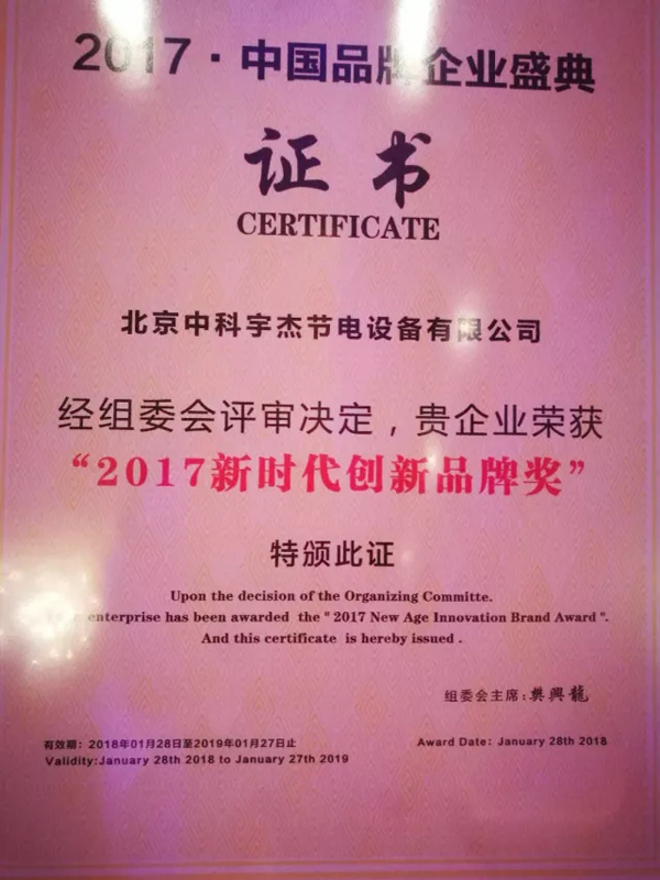 ? ? ? ? ?同時(shí),中科宇杰也榮獲 “2017新時(shí)代創(chuàng)新品牌獎(jiǎng) ”。