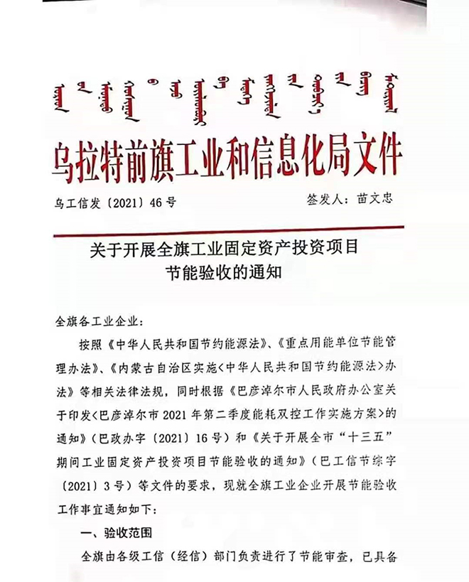 烏拉特前旗:對(duì)全旗工業(yè)企業(yè)開(kāi)展節(jié)能審查驗(yàn)收,對(duì)期限內(nèi)驗(yàn)收不通過(guò)的企業(yè),按能耗“雙控”工作違規(guī)項(xiàng)目有關(guān)規(guī)定執(zhí)行停產(chǎn)整改。