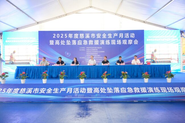 新潮塘5#地塊項(xiàng)目舉行慈溪市安全生產(chǎn)月活動(dòng)暨高處墜落應(yīng)急救援演練現(xiàn)場(chǎng)觀摩會(huì)