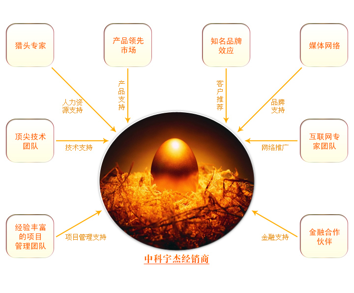 中科宇杰憑著多年的行業(yè)運(yùn)作積累和500多個(gè)節(jié)能項(xiàng)目管理經(jīng)驗(yàn),結(jié)合節(jié)能行業(yè)的現(xiàn)狀,創(chuàng)造性地提出“節(jié)能商學(xué)院”式的渠道發(fā)展政策,綜合性地為全國(guó)有志于投身節(jié)能事業(yè)的企業(yè)、人士提供一個(gè)節(jié)能行業(yè)企業(yè)的“孵化器”平臺(tái)。此平臺(tái)不但在渠道的政策方面,給予經(jīng)銷商靈活的操作方式,充分發(fā)揮不同類型經(jīng)銷商的優(yōu)勢(shì)和長(zhǎng)處,還為經(jīng)銷商提供行業(yè)資訊、技術(shù)培訓(xùn)、商務(wù)操作、投融資、人力資源、客戶資源、互聯(lián)網(wǎng)支持等方面給予強(qiáng)有力的支持,讓你的投資不但有經(jīng)濟(jì)收益,還能在企業(yè)經(jīng)營(yíng)方面得到諸多的收益。中科宇杰不但自己做大做強(qiáng),也幫助我們的合作者成長(zhǎng),共同成為節(jié)能行業(yè)的翹楚。