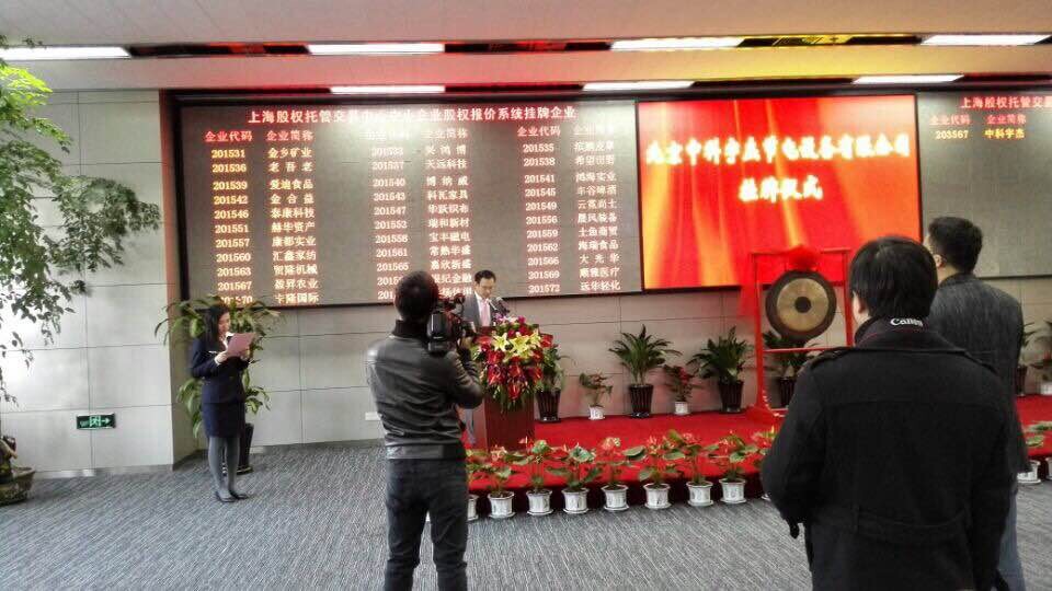 2015年1月20日,隨著董事長(zhǎng)郝澤忠與總裁徐科飛的攜手一敲,上海股權(quán)托管交易中心內(nèi)銅鑼的響起,北京中科宇杰節(jié)電設(shè)備有限公司(下稱(chēng):中科宇杰)正式登陸Q板市場(chǎng)。股票簡(jiǎn)稱(chēng):中科節(jié)電,股票代碼:203567。