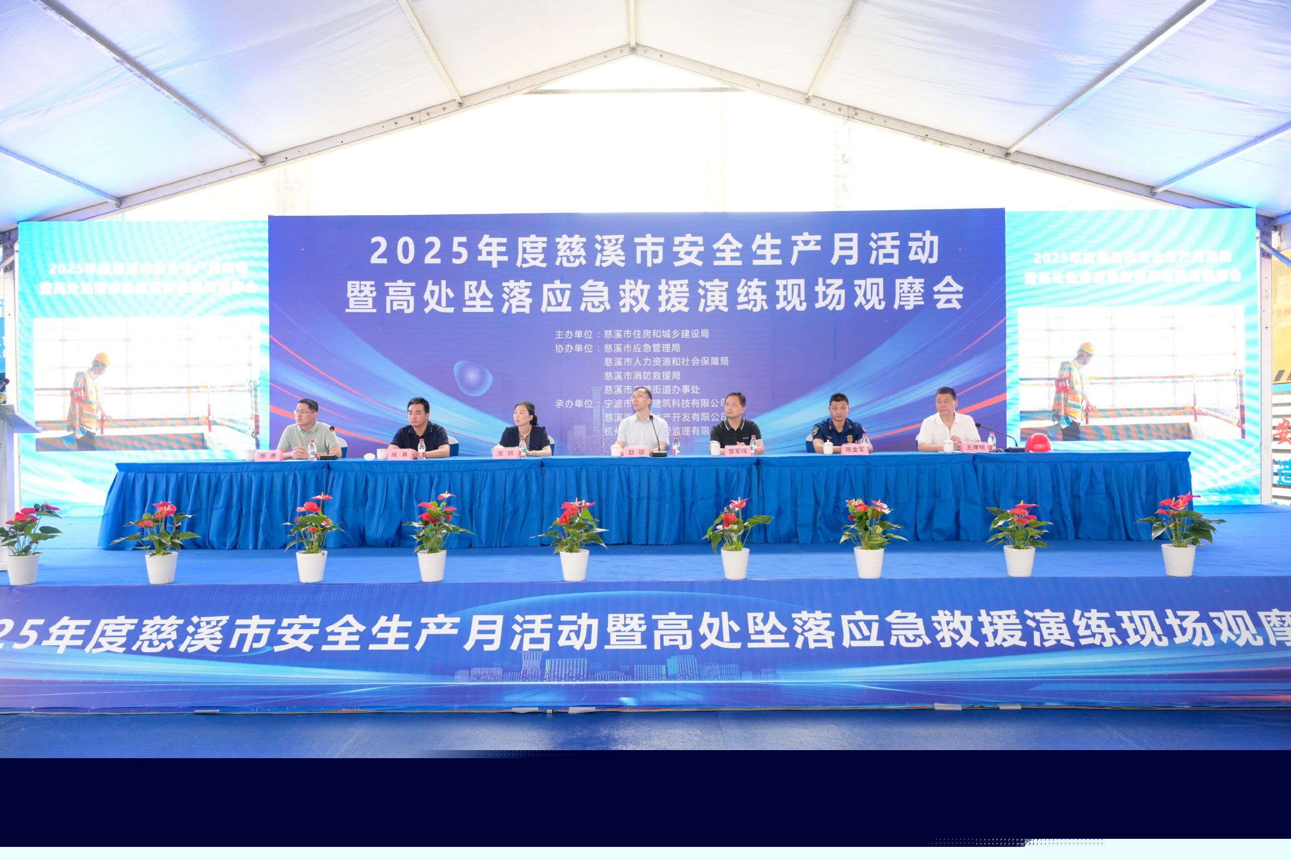 新潮塘5#地塊項(xiàng)目舉行慈溪市安全生產(chǎn)月活動暨高處墜落應(yīng)急救援演練現(xiàn)場觀摩會